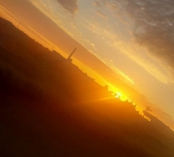 Nascer do sol neste sábado em Campo Mourão (à direita, a rodoviária).