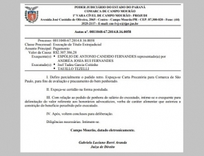 O prefeito de Campo Mourão, Tauillo Tezelli, terá parte do salário penhorado por ordem judicial.