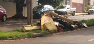 Lixo no canteiro central da av. José Custódio de Oliveira, esquina com rua Devete de Paula Xavier.