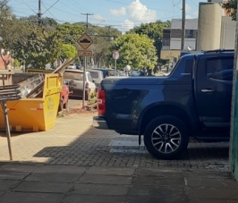 Parte da camionete ficou sobre a calçada. E o pedestre passa onde?