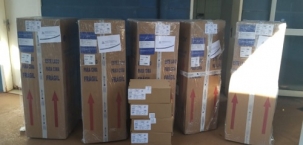 Sabe o que tem dentro dessas caixas? Mais cinco respiradores para a Santa Casa de Campo Mourão. Foram entregues na tarde deste sábado. Vieram do Ministério da Saúde. José Carlos Laurani, que faz parte da diretoria do hospital, fez o pedido ao deputado Ricardo Barros, líder do governo na Câmara Federal.