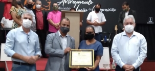 A Câmara de Campo Mourão entregou neste domingo à noite a moção pelos 10 anos de fundação da igreja Capela do Avivamento. A entrega foi feita pelo vereador autor da homenagem, Edilson Martins, ao pastor Valdinei Lopes da Silva. O deputado estadual Douglas Fabrício também prestigiou o evento.