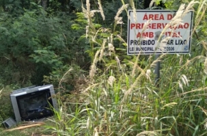 "Impressionante como a ignorância humana é capaz de produzir cenas como essa. A placa não é um aviso ao seres da habitam a mata. Rua Nelson Bittencourt Prado, no Cohapar".