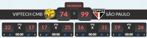 Ainda não foi desta vez que Campo Mourão conseguiu quebrar a sequência de derrotas pelo NBB. Nesta terça-feira perdeu para o São Paulo por 99 a 74. Os mourãoenses até que venceram o primeiro quarto (22 a 17), mas pararam por aí. Foi o 14° jogo sem vitória. A próxima tentativa será quinta-feira (19h), contra o Corinthians (sexto colocado). Campo Mourão segue na 15ª posição. Todas as partidas da reta final do NBB acontecem em Brasília.