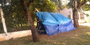 "Barraca montada no lado de fora da Casa de Passagem de Campo Mourão".