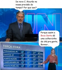 O Jornal Nacional (Globo) manteve a tradição e mostrou nesta segunda-feira, mais um vez, a previsão do tempo em Campo Mourão. Informou que vai chover 30 milímetros nesta terça-feira. Variação da temperatura? De 16 a 21 graus.