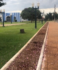 "Canteiro de flores feitos pela prefeitura na praça Alvorada, no Lar Paraná. Detalhe: nunca foram plantadas as flores".