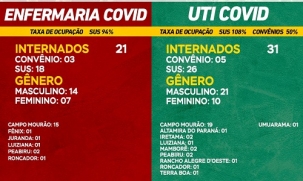 O boletim desta quarta-feira mostra 108% de ocupação nos leitos da UTI SUS e 94% na enfermaria.