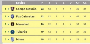 Campo Mourão e Foz do Iguaçu se enfrentam nesta quarta-feira (17h), no ginásio Belin Carolo, pela Liga Nacional de Futsal. O jogo vale a liderança do grupo C. Os dois times têm 22 pontos. A vantagem do Carneirão é no saldo de gols (15 a 9). A partida é a penúltima da fase de grupos. Os mourãoenses vão encerrar a primeira fase fora de casa contra o Minas.