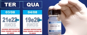 Devido a grande procura, a prefeitura mudou o calendário de vacinação e nesta quarta-feira serão vacinados apenas moradores com 20 anos ou mais.