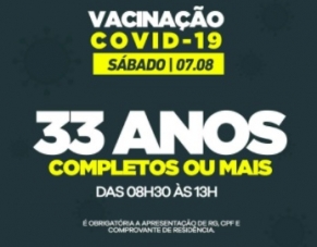Atenção moradores de Campo Mourão com 33 anos completos! Chegou a sua vez de receber a vacina contra a covid-19. Será neste sábado, das 8h30 às 13h. Também vale para quem tem mais de 33 e ainda não se vacinou, inclusive para o pessoal de 34 que não chegou a tempo para a vacina na quarta-feira passada, quando as doses acabaram antes da hora.