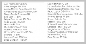 O quadro acima mostra como votou a bancada do Paraná (reprodução UOL).