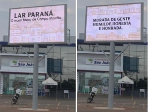 Depois que o deputado estadual Delegado Jacovós, que foi delegado-chefe da 16.a SDP, fez declarações que desagradaram moradores do Lar Paraná, em Campo Mourão, a empresa Idéia Comunicação e Painéis incluiu uma nova mensagem no painel de led que mantém no trevo de entrada do bairro.