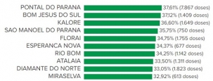 12) Rancho Alegre do Oeste 22,20% (632 doses)