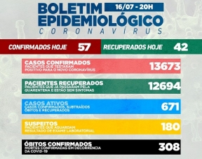 Campo Mourão teve mais 57 casos de covid-19 confirmados nesta sexta-feira. Os recuperados foram 42. Assim, o número de moradores com o vírus ativo subiu para 671. Foram confirmadas duas mortes e agora são 20 em julho. Na ala covid as internações caíram para 50. Taxa de ocupação: 78% na enfermaria, 116% na UTI SUS e 30% na UTI convênios.