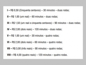 Valor? A metade dos carros, ou seja, R$ 0,50 a cada meia hora.