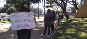 Domingo foi dia de vacinar contra covid-19, em Campo Mourão, profissionais da educação básica e profissionalizante com 40 anos ou mais. A professora Rosinalva Ordonia da Silva, da rede estadual, esperou sua vez com um cartaz na mão.