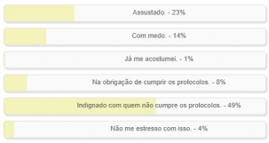 "Com os casos e mortes por covid-19 batendo recordes em Campo Mourão e região, como você se sente?" Enquete com essa pergunta foi encerrada nesta segunda-feira. A alternativa "Indignado com quem não cumpre os protocolos" venceu fácil, com 49% dos votos. Em segundo ficou "Assustado" (23%) e em terceiro "Com medo" (14%). Só 4% disse que "não se estressa com isso". O resultado completo está no quadro acima.