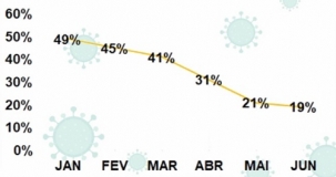 Até janeiro, antes da vacina, 49% das internações por covid-19 em Campo Mourão eram de pessoas idosas (acima de 60 anos). Desde então, com o início da vacinação, esse percentual vem caindo e chegou a 19% em 16 de junho. O gráfico foi divulgado pela prefeitura nesta segunda-feira para mostrar a eficácia da vacina.