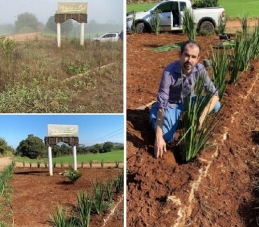"Doei meu trabalho e as mudas de plantas, junto com meu pai, e fizemos um pequeno jardim na entrada do distrito de Paraíso do Sul".