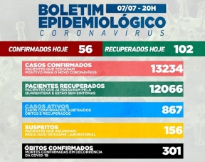 Com mais duas mortes confirmadas nesta quarta-feira, Campo Mourão chegou a 301 óbitos por covid-19 deste o inicio da pandemia. São 236 este ano e 13 em julho. Com mais 56 casos e 102 recuperações, o município reduziu para 867 os moradores com o vírus ativo. Taxa de ocupação de leitos: 105% na enfermaria, 129% na UTI SUS e 30% na UTI convênios.
