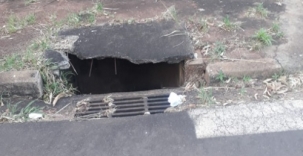 "Jardim Morumbi, em Goioerê. Tem várias galerias deste jeito. Já ocorreu ocorreu acidente. A prefeitura precisa tomar providencias urgentes. É só colocar tampas novas".