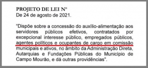 ATUALIZAÇÃO - A prefeitura esclarece que nem prefeito, nem vice-prefeita vão receber o auxílio alimentação.