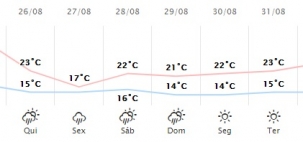 Tá calor, né? Segundo o Simepar, a máxima nesta quarta-feira chegou a 33,5°C em Campo Mourão. Na região, a temperatura foi ainda maior em Ubiratã (34,6°C). A previsão para quinta-feira é de temperaturas mais amenas. Máxima de 23°C em Campo Mourão, com pacandas de chuva. Na sexta chove e o termômetro não passa dos 17°C.