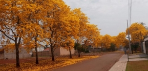 Florada de ipês no jardim Araucária, em Campo Mourão.