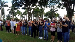 Até o prefeito Júlio Frare participou do protesto realizado na praça central, em frente à prefeitura.