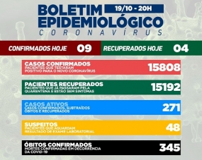 Campo Mourão teve nove casos de covid-19 confirmados nesta terça-feira. Os recuperados foram quatro. Os mourãoenses com o vírus ativo são 271. A ala covid segue com sete internações - uma na enfermaria (5% de ocupação) e seis na UTI SUS (25%). Dos internados, três são de Campo Mourão.