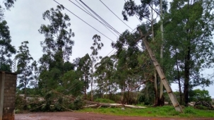 "Uma das dezenas de árvores derrubadas pelo temporal da madrugada desta quinta-feira em Campo Mourão. Foi nos fundos da Colacril, no Lar Paraná, onde um poste também quase caiu".