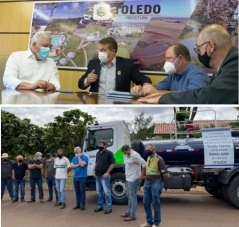 O deputado Douglas Fabrício iniciou no último dia 13 um giro de visitas a 53 municípios nas regiões centro-sul, oeste e sudoeste. Só termina nesta sexta-feira, depois de 10 dias. Nas fotos, com o prefeito de Toledo, Beto Lunitti, e na entrega de caminhão-pipa em São José das Palmeiras. Nesse período, Douglas participa das sessões da Assembleia por vídeo.