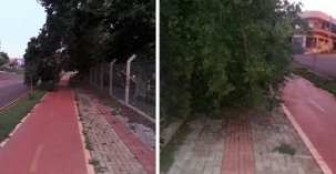 "Que o bosque esta abandonado todos sabem, mas agora tem até árvore impedindo a passagem pela calçada".