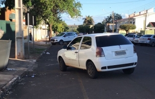 Na rua Guarapuava, na área central, veículo ficou mal encostado e ainda na contra-mão.