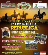 Olha aí a vida voltando ao normal. A prefeitura de Corumbataí do Sul anuncia apoio à 7ª Cavalgada da República. Será no próximo dia 14, véspera do feriado de Proclamação da República. A saída acontece às 9h30 e na chegada tem almoço a R$ 30. Prato? Porco caipira na lata. Segundo a divulgação, depois do almoço ainda tem bailão.