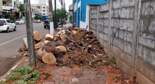 Na rua Araruna, centro de Campo Mourão, o resultado do "massacre da serra elétrica" também ficou sobre a calçada, atravancando o caminho dos pedestres.
