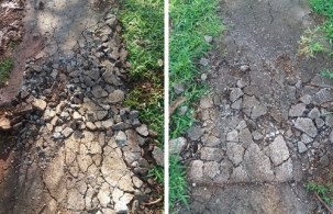 Destruição da calçada do Cemitério Municipal, nosso patrimônio público.