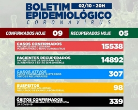 Campo Mourão confirmou nove casos de covid-19 neste sábado. Os recuperados foram cinco. O número de moradores com o vírus ativo foi a 307. Na ala covid dos hospitais são 17 internações, sendo 12 na unidade de terapia intensiva. Taxa de ocupação de leitos: 24% na enfermaria, 45% na UTI SUS e 10% na UTI convênios.