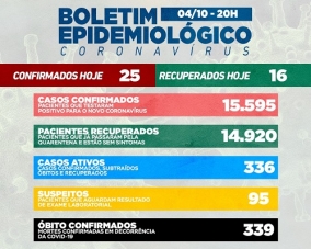 Campo Mourão teve mais 25 casos de covid-19 confirmados nesta segunda-feira. Os recuperados foram 16 e o número de vírus ativo subiu mais um pouco e foi a 336. A taxa de ocupação de leitos está 31% na enfermaria, 33% na UTI SUS e 10% na UTI convênios. São 15 as internações, sendo 9 na unidade de terapia intensiva.