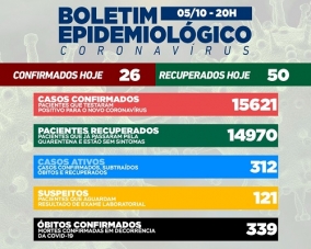 Vinte e seis casos de covid-19 foram confirmados nesta terça-feira em Campo Mourão. Os recuperados foram 50. Assim, o número de moradores com o vírus ativo caiu para 312. Na ala covid são 18 as internações. Taxa de ocupação de leitos: 42% na enfermaria, 33% na UTI SUS e 10% na UTI convênios.