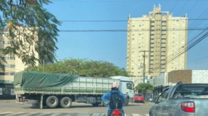 No dia em que entrou em vigor a lei que proíbe caminhões acima de 5,9 toneladas no centro de Campo Mourão, nada mudou.