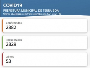 Segundo município da região em número de casos de covid-19, Terra Boa está sem nenhum caso ativo da doença. É o quarto município "zerado" na região. Terra Boa já teve 2.882 registros desde o início da pandemia, com 2.829 recuperados e 53 mortes. Na região, só Campo Mourão teve mais confirmações. Também estão "zerados" Boa Esperança, Moreira Sales e Rancho Alegre do Oeste.