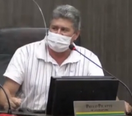Paulo Pilatte, vereador em Campo Mourão, sobre a situação do Parque do Lago. Segundo ele, não é por que está prevista uma revitalização que o local não precise de manutenção; durante sessão da Câmara, terça-feira.