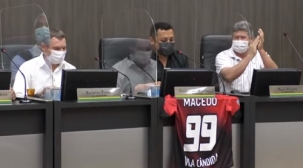O vereador Subtenente Macedo levou uma camisa do time da Vila Cândida. Disse que era uma homenagem à equipe e que pretende homenagear outros times de bairros.