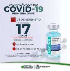 Moreira Sales é a primeira cidade da região a anunciar a vacinação de menores de 18 anos sem que eles pertençam a grupos de risco. Será nesta quinta-feira para moradores com 17 anos, que devem estar acompanhados de um responsável. A vacinação acontece no Salão Paroquial, das 8h30 às 11h e das 13h30 às 16h. A Secretaria de Saúde só aviso que as doses são limitadas.