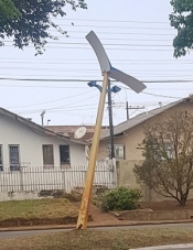 Poste de iluminação torto na av John Kennedy, no Lar Paraná.