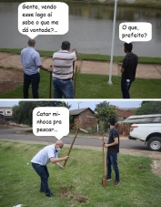 Calma, gente, que o balãozinho de Boca Santa é só uma brincadeira. O prefeito José Etevaldo Branco foi sim ao Lago Municipal de Altamira do Paraná. E pegou sim no cabo da enxada, mas nada de pescaria. Foi para plantar mudas de ipês em comemoração ao Dia da Árvore...