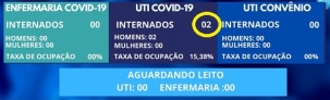 Depois de 12 dias vazia, a UTI da Santa Casa de Goioerê voltou a ter pacientes internados com covid-19. Duas internações apareceram no boletim divulgado neste domingo. A taxa de ocupação na unidade é de 15%. A enfermaria e a UTI convênios seguem livres.