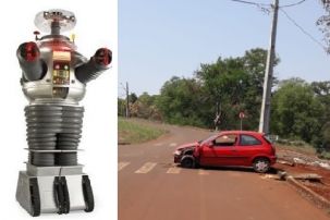 E o carro que bateu no poste na rua Abelar G. Neto, no Parque das Acácias, continua no local. Já sofreu um acidente e pela posição que está agora pode causar outro...